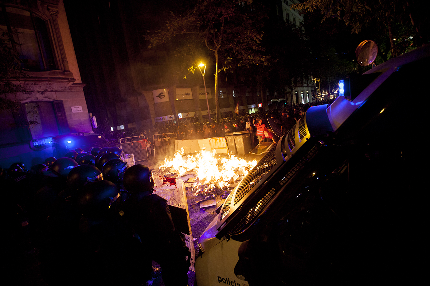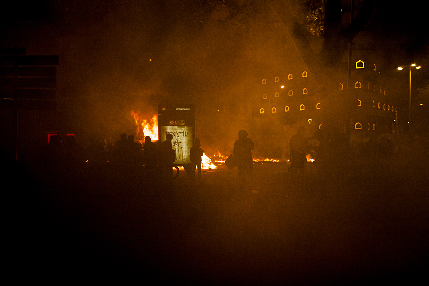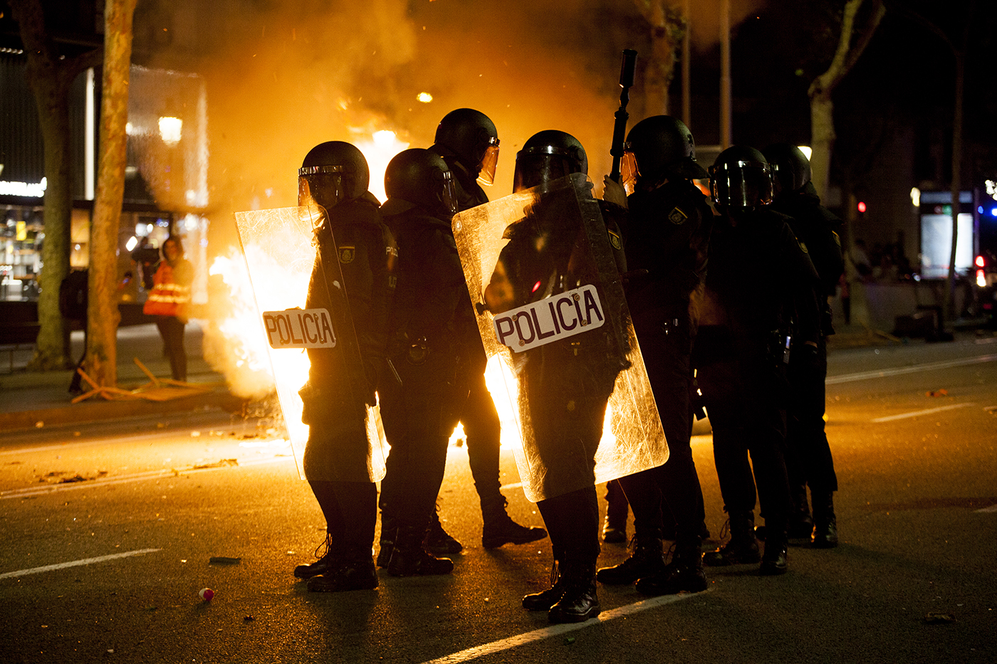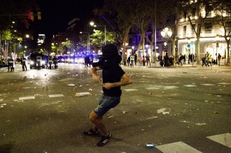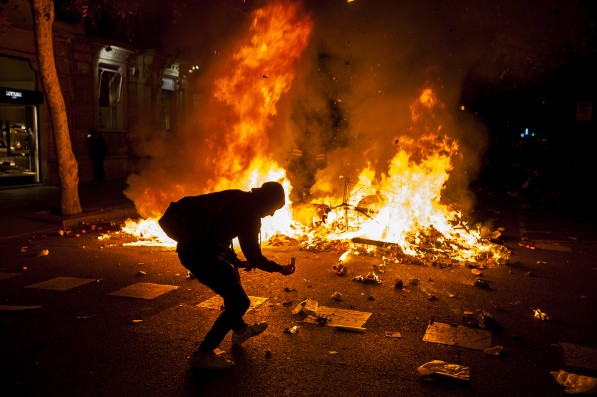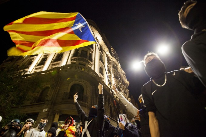 Protestas en la ciudad de Barcelona contra la sentencia del juicio del proceso idependentista catalán el 16 de octubre de 2019.