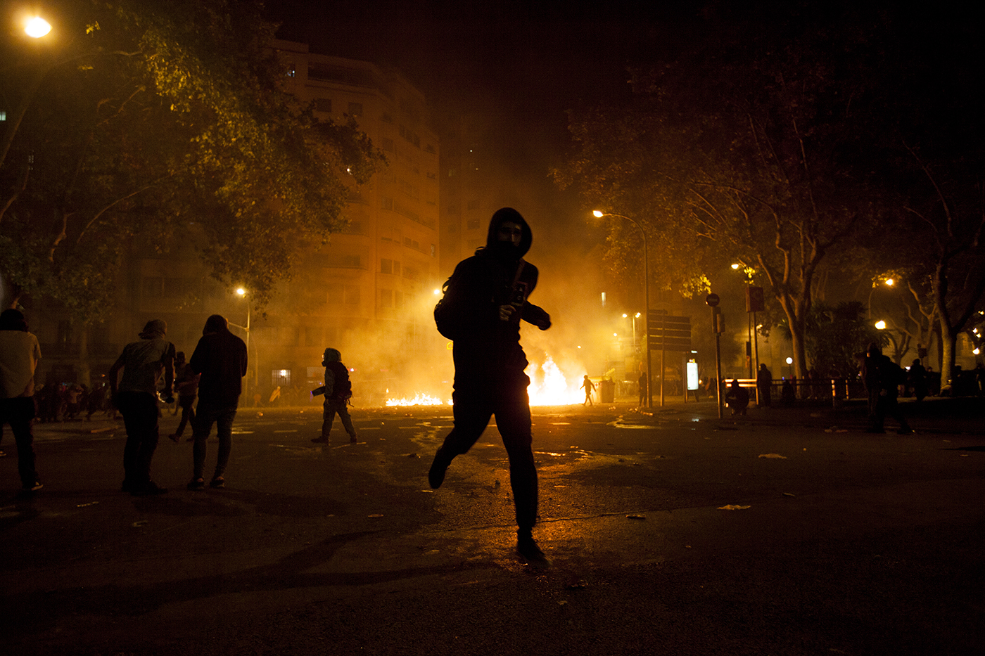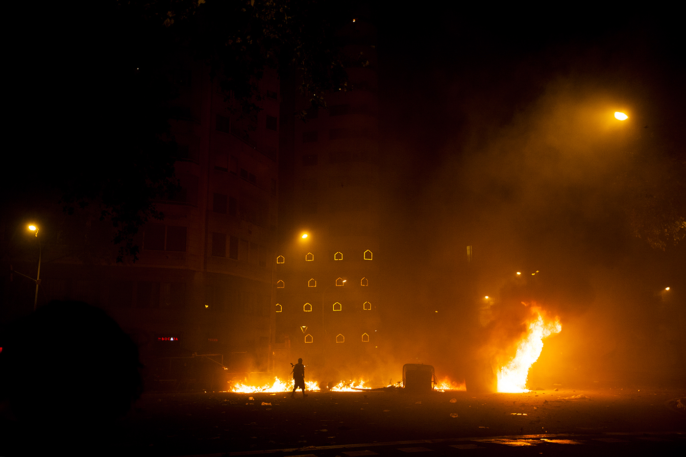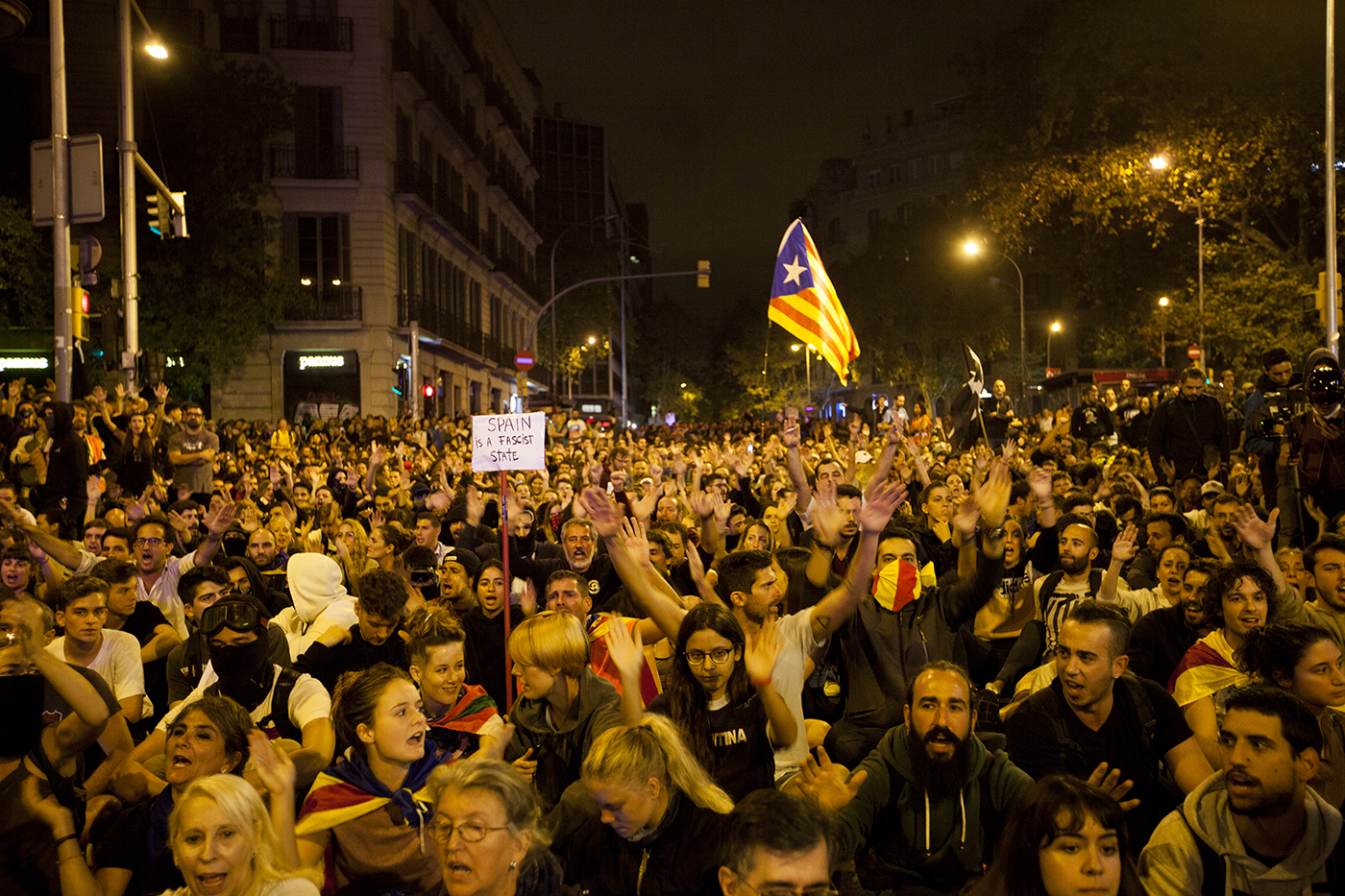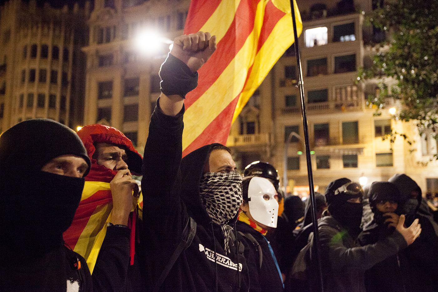 Protestas en la ciudad de Barcelona contra la sentencia del juicio del proceso idependentista catalán el 16 de octubre de 2019.