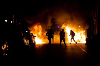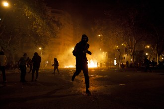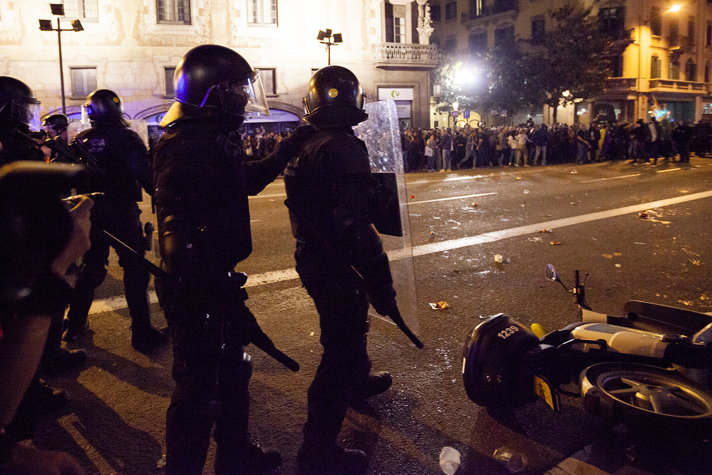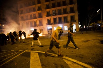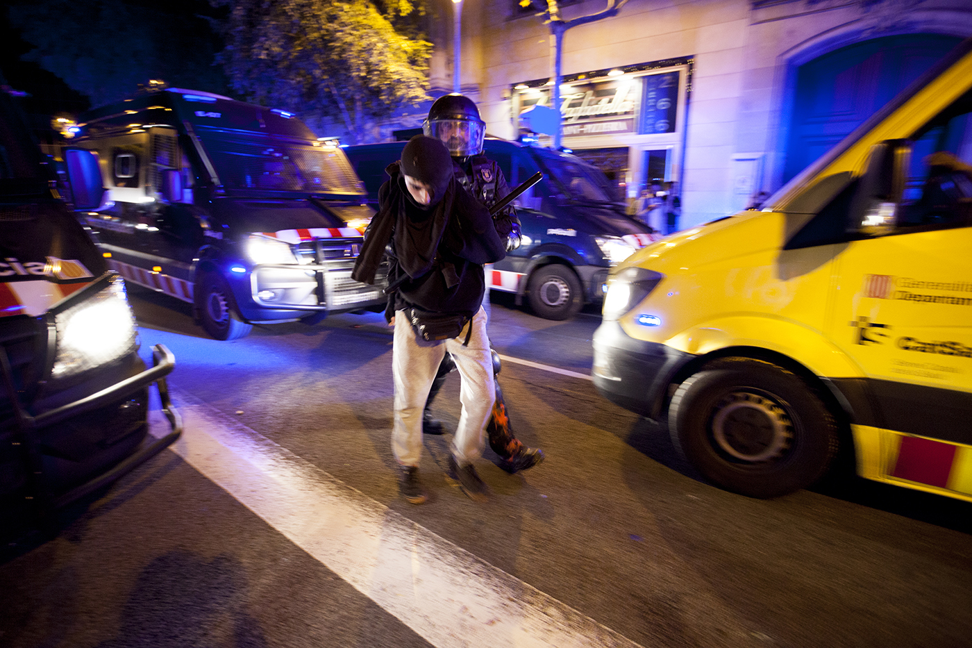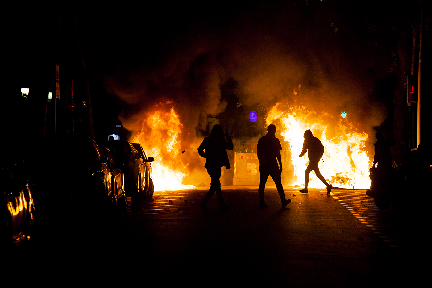 Protestas en la ciudad de Barcelona contra la sentencia del juicio del proceso idependentista catalán el 16 de octubre de 2019.