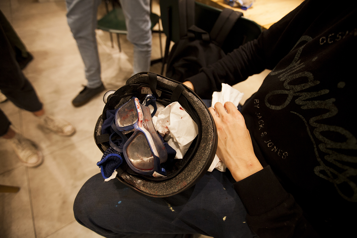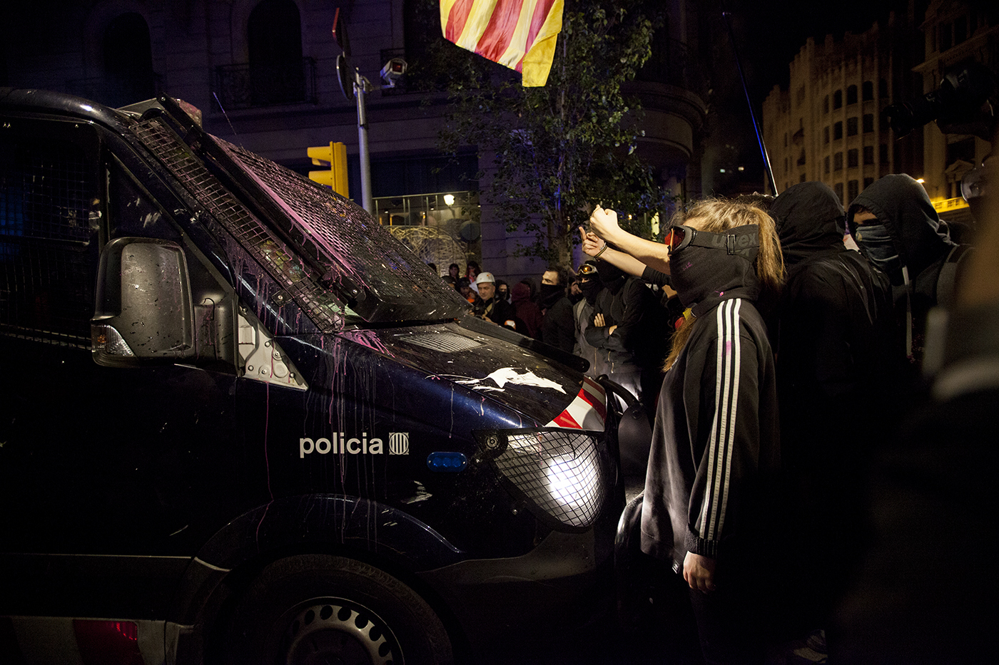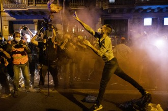 Protestas contra la inhabilitación de hoy del Presidente de la Generalitat Quim Torra. Cabezas de cerdo contra la policía y algunos disturbios dentro del Parlamento. Barcelona, 28 de septiembre de 2020