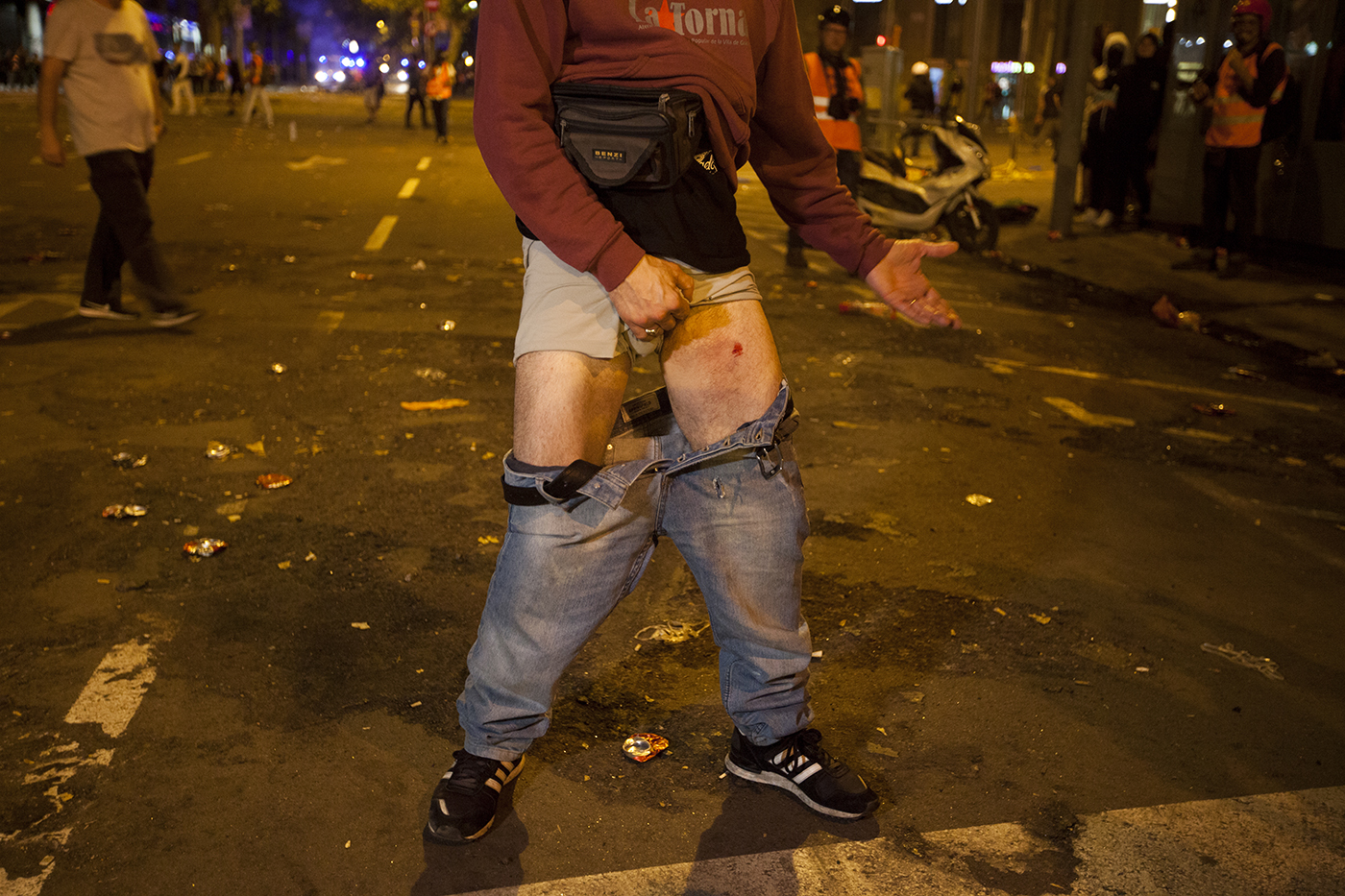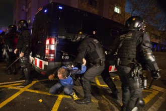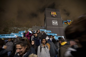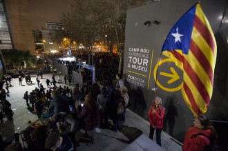 Miles de personas se movilizaron tanto dentro como fuera del Camp Nou de Barcelona con el lema spainsitandtalk durante el clásico Barça-Madrid. Se vivieron momentos de tensión entre ultras del F.C Barcelona y asistentes de la protesta, registros para entrar en el campo, cargas policiales, barricadas y detenciones. Barcelona, 18 de diciembre de 2019.