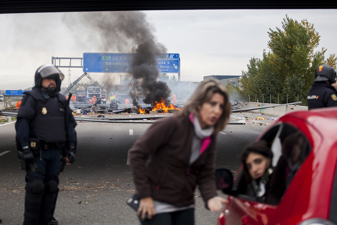 Desalojo de la AP-7 en Salt, Girona el 13 de noviembre de 2019.