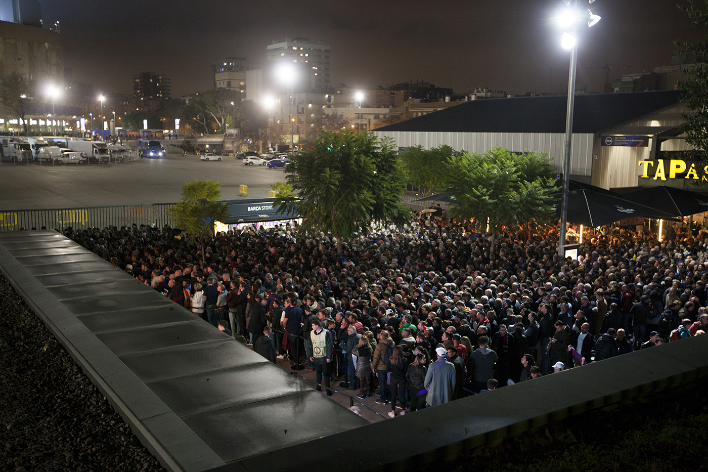Miles de personas se movilizaron tanto dentro como fuera del Camp Nou de Barcelona con el lema spainsitandtalk durante el clásico Barça-Madrid. Se vivieron momentos de tensión entre ultras del F.C Barcelona y asistentes de la protesta, registros para entrar en el campo, cargas policiales, barricadas y detenciones. Barcelona, 18 de diciembre de 2019