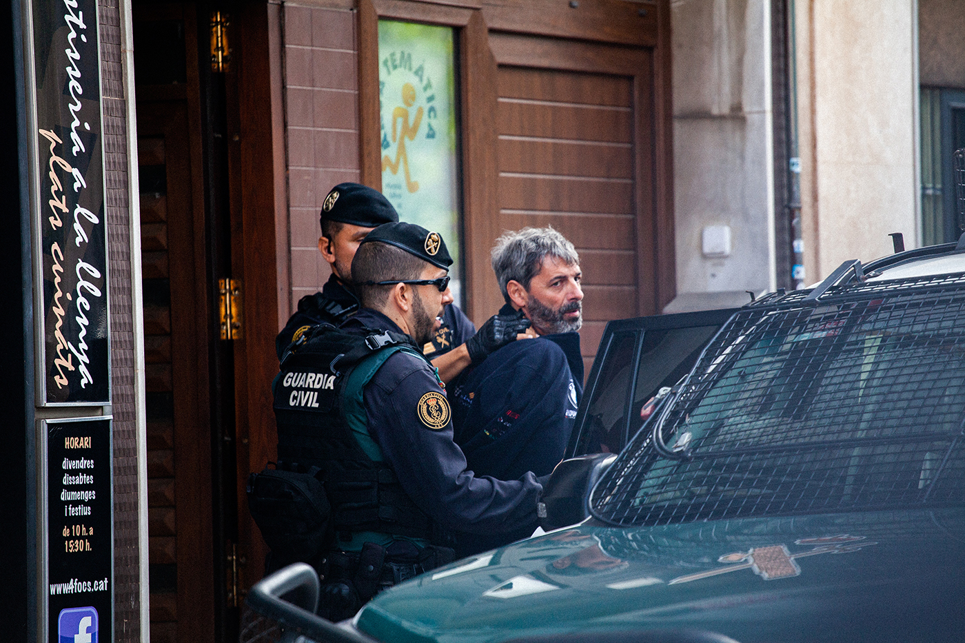 La Guardia Civil ha realizado cuatro registros este lunes en Sabadell, Barcelona, 23 de septiembre de 2029, en el marco de una macrooperación en toda Catalunya, ordenada por la Audiencia Nacional, en la que en total hay nueve detenidos. Los tachan de "grupo separatista de índole secesionista catalán" y se les acusa por presuntos delitos de rebelión, terrorismo y tenencia de explosivos.