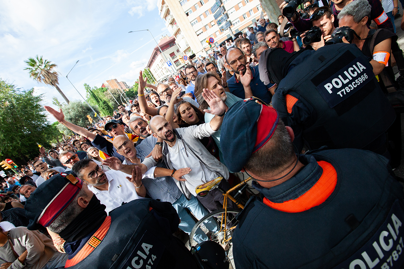 Protestas en la ciudad de Barcelona contra la sentencia del juicio del proceso idependentista catalán el 19 de octubre de 2019.