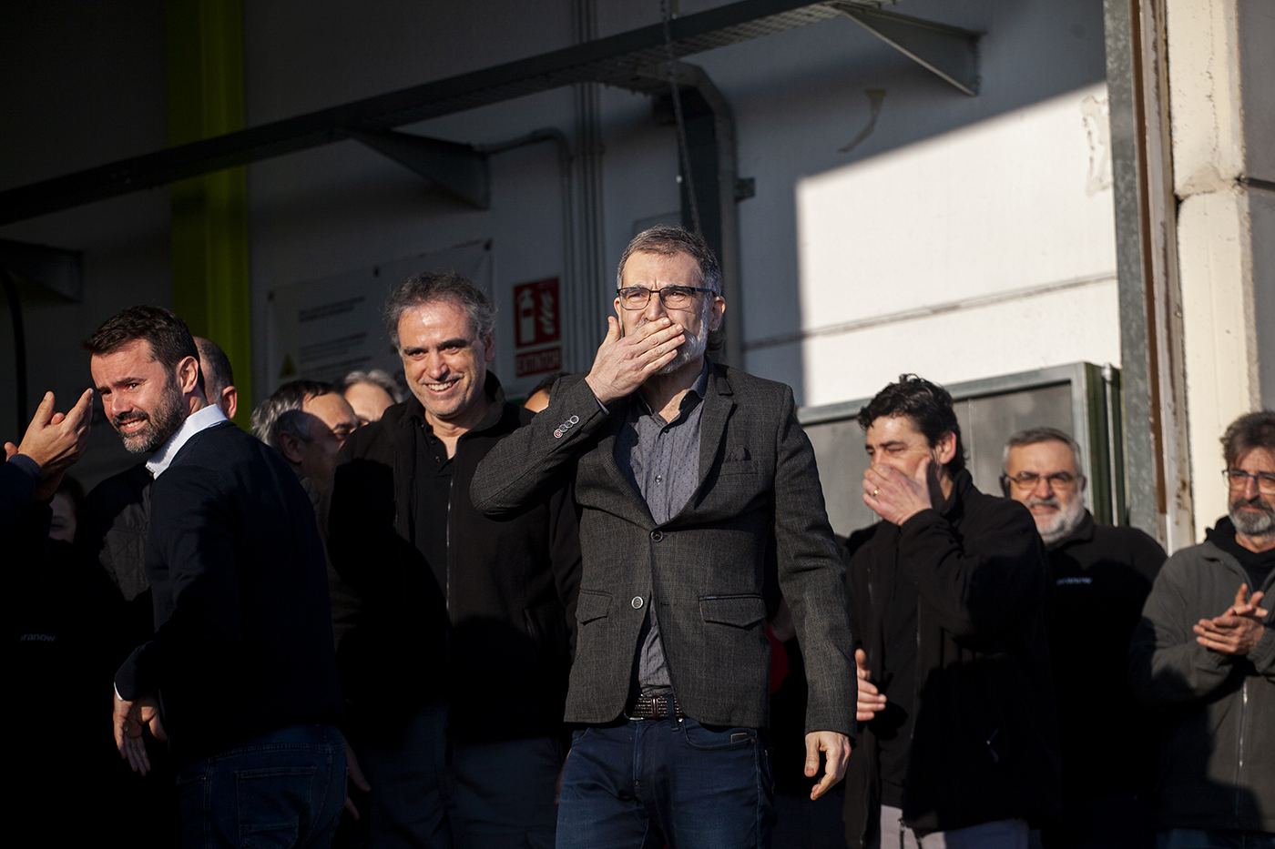 Jordi Cuixart ha salido de prisión por ir a trabajar a su empresa. Podrá ir 5 días a la semana, y estar fuera durante 9 horas y 30min, en Semanat, Barcelona, 13 de febrero de 2020. Cuixart, en el Juicio al proceso independentista catalán fue condenado por el Tribunal Supremo del Estado español, en octubre de 2019, a 9 años de prisión y de inhabilitación por el delito de sedición.