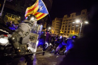 Protestas en la ciudad de Barcelona contra la sentencia del juicio del proceso idependentista catalán el 27 de octubre de 2019.